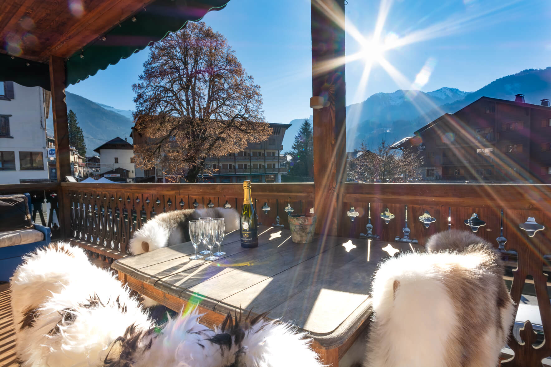 At Apartment DiX, outdoor living is just as thoughtfully considered as the interiors. The centrepiece is the generous 20 m² south-facing covered balcony, which enjoys sunshine throughout the day along with sweeping views of the Criou mountain, the historic streets of Samoëns and the peaks of the Grand Massif.