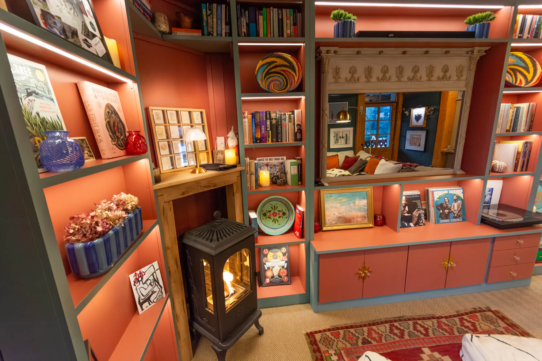 The living space is a true highlight of the apartment. A huge, deeply comfortable sofa invites you to unwind beside the soft glow of the Swedish bioethanol fire, while a smart TV - ingeniously concealed behind a Georgian mirror - keeps the room’s elegant aesthetic intact. A Sonos speaker, a selection of family board games, and a record player with a collection of vinyl complete the experience for lovers of music and cosy evenings in. Wi-Fi is available.